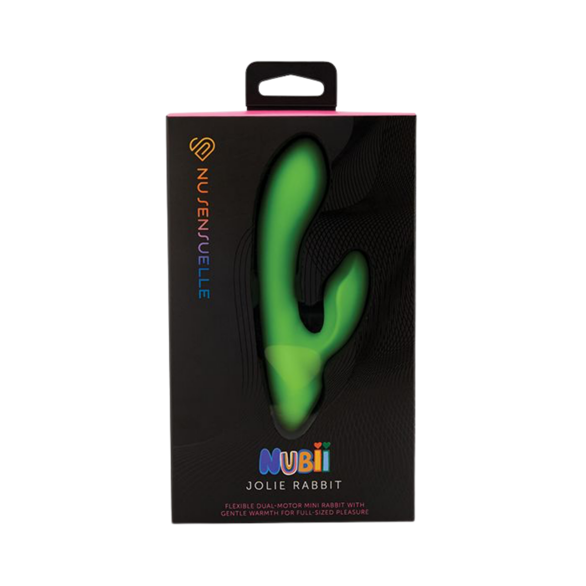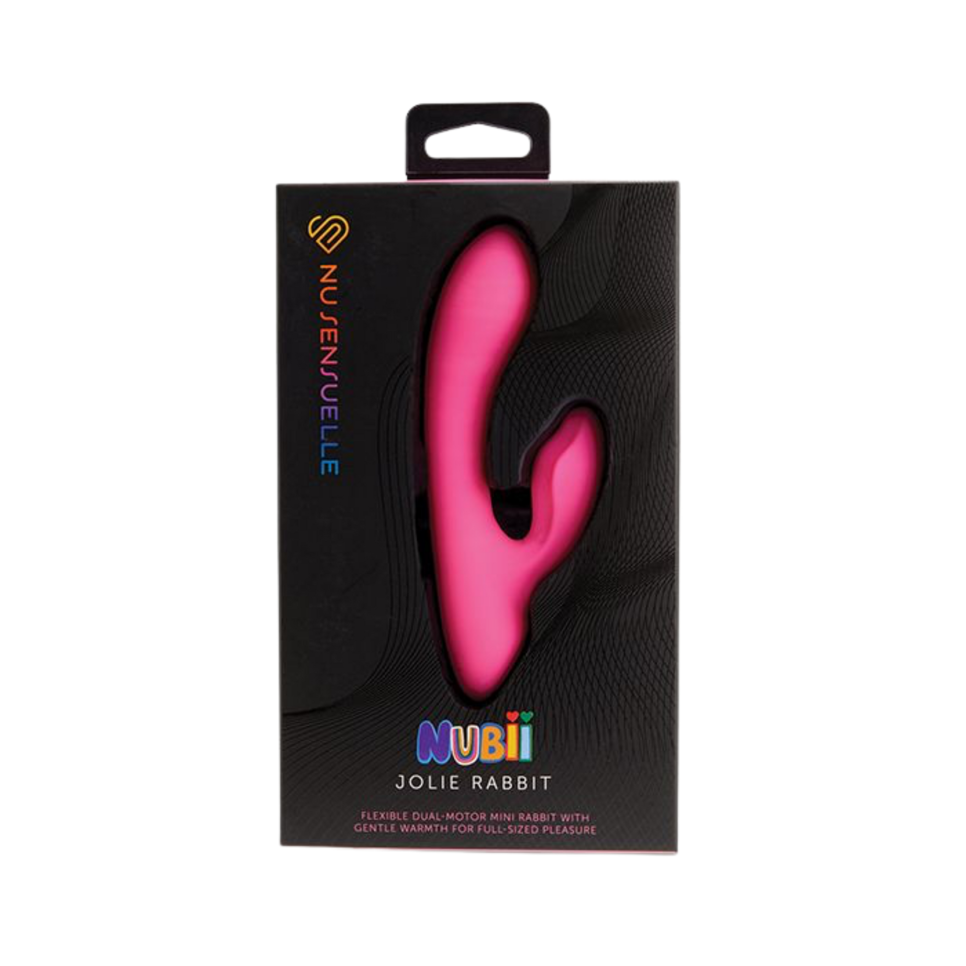 Put a bounce into your step by indulging in the sensuous warmth of our seductive Nubii Jolie Mini Rabbit. With an adorable figure, this dual-motor mini rabbit bullet vibrator from Nu Sensuelle delivers three irresistible speeds and four satisfying vibration patterns for luxurious thrills. Kick in the independently controlled warming function and hop to new heights in ecstasy as you surrender to Jolie's seductive charm. The rabbit's petite size makes for the ideal travel companion that will undoubtedly provide full-sized pleasure no matter where you are in the world!